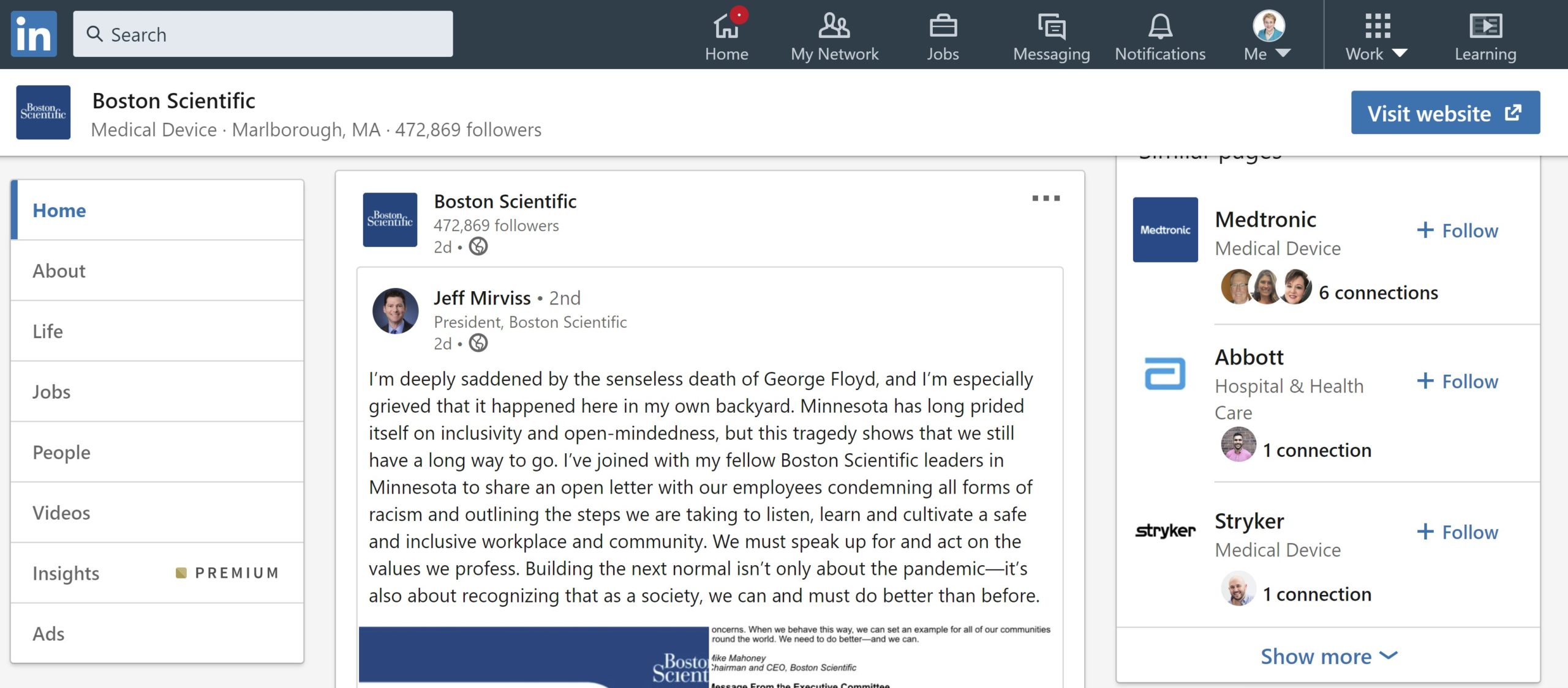 Below is a letter I shared with Medtronic employees in Minnesota in light of the tragic events in Minneapolis this week. Colleagues, The news and video of the apprehension and death of George Floyd and the ensuing unrest in Minneapolis has rattled me, and I know it has rattled you.